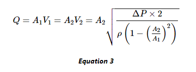 該方程將流體速度(V2)與壓差和管道尺寸相關(guān)聯(lián),F(xiàn)在,我們可以將流體的體積流量(Q)計(jì)算為: