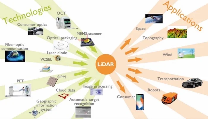 激光雷達(dá)技術(shù)和應(yīng)用示例。圖片由 Yole Développement提供