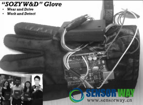 假如司機(jī)喝了酒,手套上的氣體傳感器就能從人體呼出的氣體中敏銳的捕獲到酒精,并確定酒精濃度,這時(shí)蜂鳴振動(dòng)器就會(huì)發(fā)出聲響,提醒司機(jī)請(qǐng)勿再駕車。倘若司機(jī)不聽(tīng)警告,手套里的GPS追蹤系統(tǒng)會(huì)將此情況通知附近的交警。