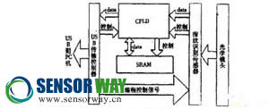 因此,利用CMOS數(shù)字圖像傳感器與USB接口數(shù)據(jù)傳輸來實現(xiàn)的指紋識別儀具有結(jié)構(gòu)簡單,體積小,便攜化等優(yōu)點,F(xiàn)將介紹利用OMniVision公司的CMOS彩色數(shù)字圖像傳感器OV762M和cypress公司的EZ—USB AN2131QC USB控制傳輸芯片(內(nèi)部集成了增強形51內(nèi)核)來實現(xiàn)指紋信息的采集和USB傳輸,同時由于指紋傳感器輸出數(shù)據(jù)的速率(27MB/s)與USB控制器(AN2131QC)數(shù)據(jù)傳輸速率(12Mb/s)的不匹配,故系統(tǒng)采用了SRAM和CPLD構(gòu)成中間高速緩沖區(qū)。