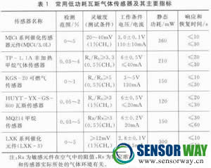 表1列出了目前常用低功耗瓦斯傳感元件及其主要指標。從表中可以看出,常用低功耗瓦斯傳感器的功耗都在100mW以上,這對于由電池供電的無線傳感器節(jié)點來說是非常不利的。而且表中所列傳感元件都有一定的響應時間,即傳感元件供電后,需要等待其響應一段時間,才能正確地反映瓦斯?jié)舛刃畔。較長的響應時間限制了無線瓦斯傳感器節(jié)點每次采集數(shù)據(jù)時的工作時間不能太短。例如,TP-1.1A非加熱甲烷氣體傳感器的響應時間接近20 s.如果瓦斯傳感器節(jié)點采用該傳感元件,當其采集一次數(shù)據(jù)時,從給傳感器供電開始,前20 s采集數(shù)據(jù)是沒有意義的,因為這時傳感元件處于響應階段,其電壓值不能準確地反映實際瓦斯?jié)舛刃畔ⅰR虼嗣坎杉淮螖?shù)據(jù),給傳感元件供電的時間至少持續(xù)20 s以上。對于如此高功耗的傳感元件來說,采集一次數(shù)據(jù)所消耗的能量是非常巨大的。這使得所設計的無線瓦斯傳感器節(jié)點的工作時間過短,以致不能達到實用化要求。