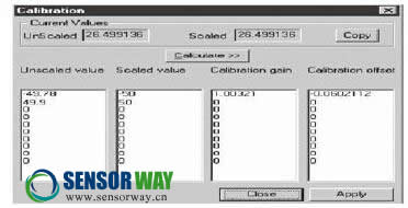 現(xiàn)在,按下“Calculate(計(jì)算)”按鈕,軟件開始計(jì)算該傳感器輸入通道標(biāo)定增益和零偏以達(dá)到期望的Scaled值。按下“Apply(應(yīng)用)”按鈕,這些值將被保存到計(jì)算機(jī)軟件系統(tǒng)中。