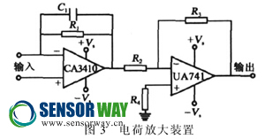 (1)與PVDF壓電薄膜傳感器阻抗匹配,把高阻抗輸入變?yōu)榈妥杩馆敵觥?br/> (2)將微弱電荷轉(zhuǎn)換成電壓信號(hào)并放大。由于PVDF壓電薄膜在受力作用下產(chǎn)生的電荷易通過(guò)放電回路泄露,產(chǎn)生測(cè)量誤差。因此,為了減少測(cè)量誤差,在設(shè)計(jì)電荷放大裝置時(shí),必須提高測(cè)量回路的時(shí)間常數(shù)。提高放電時(shí)間常數(shù)有增加回路電容和提高