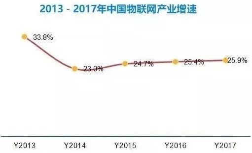 物聯(lián)網(wǎng)發(fā)展已經(jīng)成為國家層面技術(shù)及產(chǎn)業(yè)創(chuàng)新的重點(diǎn)方向,推進(jìn)物聯(lián)網(wǎng)產(chǎn)業(yè)化、規(guī)模化發(fā)展的技術(shù)環(huán)境已基本具備,為了保障物聯(lián)網(wǎng)產(chǎn)業(yè)化規(guī);l(fā)展,尤其在技術(shù)標(biāo)準(zhǔn)規(guī)范、自主知識(shí)產(chǎn)權(quán)、信息安全等方面相關(guān)政策成為加快推進(jìn)物聯(lián)網(wǎng)發(fā)展的主要?jiǎng)恿χ。近幾年中國物?lián)網(wǎng)產(chǎn)業(yè)增速都在20%以上,2017年,中國物聯(lián)網(wǎng)市場(chǎng)規(guī)模超過10000億元。