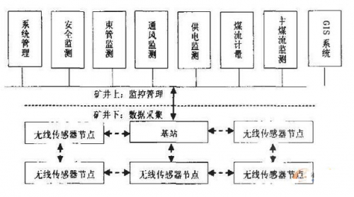 前我國煤礦行業(yè)信息化水平較低,信息技術(shù)應(yīng)用不平衡。井下連采工作面由于設(shè)備較多,各設(shè)備隨機(jī)獨(dú)立作業(yè),造成互相之間信息不溝通,更難以實(shí)現(xiàn)綜合數(shù)據(jù)網(wǎng)絡(luò)管理,從而限制了礦井自動(dòng)化網(wǎng)絡(luò)技術(shù)對(duì)該地區(qū)的輻射,這在一定程度上制約著煤礦安全生產(chǎn)工作。基于上述原因,本文作者設(shè)計(jì)了一個(gè)基于無線傳感器網(wǎng)絡(luò)的煤礦安全監(jiān)控系統(tǒng),可以對(duì)井下環(huán)境參數(shù)和工況參數(shù)進(jìn)行采集,并把采集到的參數(shù)實(shí)時(shí)送往井上的計(jì)算機(jī)進(jìn)行顯示、控制和超限報(bào)警等處理。