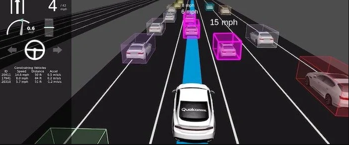 演示了Snapdragon Ride平臺(tái)的仿真,據(jù)報(bào)道該平臺(tái)可以提供道路可視化。圖片記入高通公司