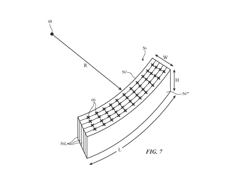 這是關(guān)鍵部分,這種光學(xué)傳感器可能會(huì)被布置并彎曲,以占用盡可能少的空間。蘋果公司說:“每個(gè)光控部件都可以由一疊層壓彎曲的光控膜形成! “用于堆疊的光控膜可以使用具有彎曲表面的層壓工具壓制成所需的彎曲形狀!
