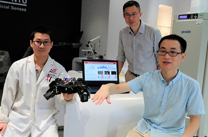 NTU新加坡的科學(xué)家將計算機(jī)視覺和類似皮膚的電子設(shè)備結(jié)合在一起,引導(dǎo)機(jī)器人穿過迷宮。圖片由NTU新加坡提供