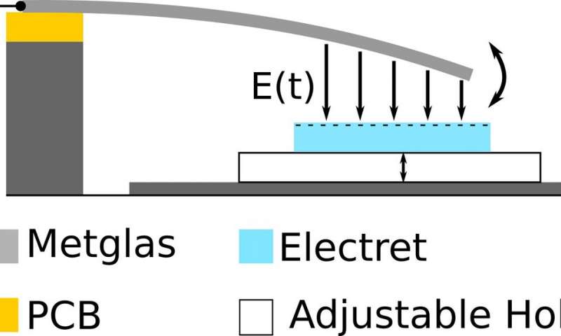 通過施加磁場,彎曲梁振動。永久充電的駐極體(藍色)拉動彎曲梁。這樣,他的振動力變得更強,并且發(fā)出的電信號也更強。學(xué)分:基爾大學(xué)