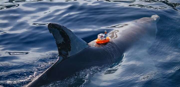 鹽度傳感器與超低功率水生標(biāo)簽集成在一起,并與寬吻海豚相連。這張照片是在西班牙瓦倫西亞的2018年研討會“海洋2.0:探索海洋動物”中拍攝的。圖片來源:Robert Romosan