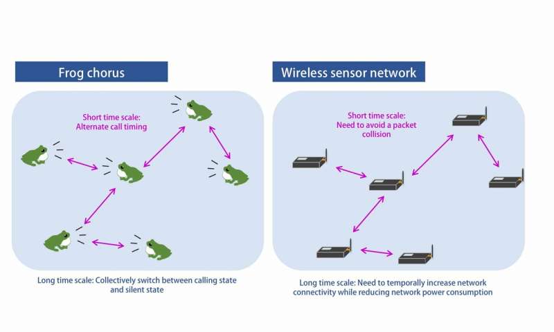 該研究的合著者大知小南解釋說:“我們發(fā)現(xiàn)相鄰的青蛙避免了時(shí)間上的重疊,這為清晰地聽到個(gè)人聲音提供了路徑。” “以同樣的方式,傳感器網(wǎng)絡(luò)中的相鄰節(jié)點(diǎn)需要改變數(shù)據(jù)傳輸?shù)臅r(shí)序,以使數(shù)據(jù)包不會(huì)發(fā)生沖突。”