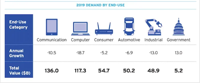關于半導體最終用途的2019年需求的高級圖形。圖片由新航提供