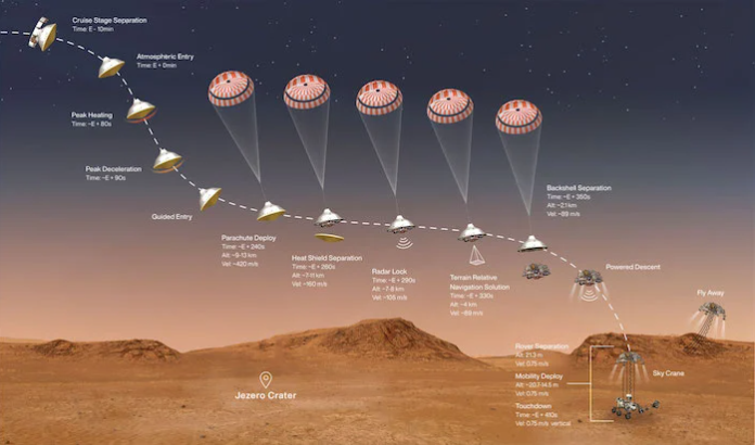 對(duì)進(jìn)入,下降和降落(EDL)系統(tǒng)如何將火星車(chē)安全降落在火星表面上的功能進(jìn)行了高級(jí)描述。圖片由NASA / JPL-Caltech提供