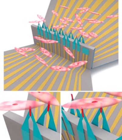 彈出式傳感器與心臟細(xì)胞接口的圖示。圖片由UCSD提供