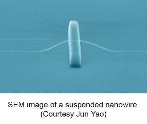 懸浮納米線的 SEM(掃描電子顯微鏡)圖像。來源:姚俊