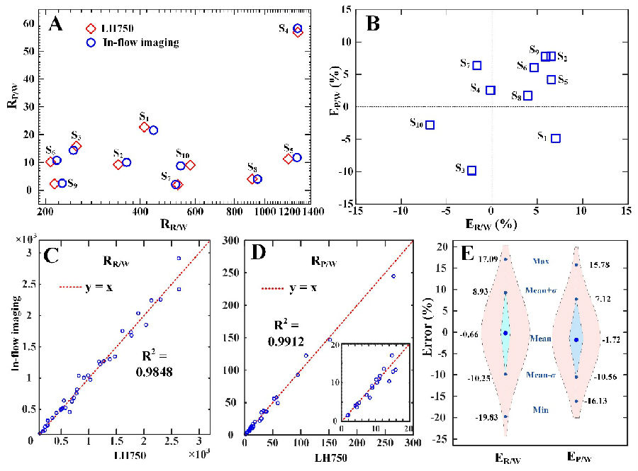 在微流控芯片方面,團隊利用交錯擠壓結構實現細胞單層直線排列,提出基于縮/擴結構的單細胞定點翻轉,仿真分析了寬流速范圍內(出口平均流速50~2000 μm/s)芯片功能的有效性及穩(wěn)定性。在單細胞識別、計數方面,團隊基于軌跡跟蹤的多角度形態(tài)學關聯分析方法,成功將單細胞識別平均精度由0.8622提升至0.9934,可有效剔除細胞重疊、聚團導致的誤識、漏識。在系統(tǒng)性能層面,實現測試通量約為8000個細胞/分鐘,樣本濃度一致性極限時長可達1小時。在臨床樣本檢測靈敏度及特異性方面,該研究開展了10例雙盲測試及75例臨床患者的大規(guī)模樣本分析驗證。結果表明,POCT設備與臨床用檢驗設備(血球儀)的細胞子類計數結果高度一致(R2>0.98),充分驗證了該方法的可行性及POCT設備在血細胞濃度異,F場診斷方面的應用潛力。