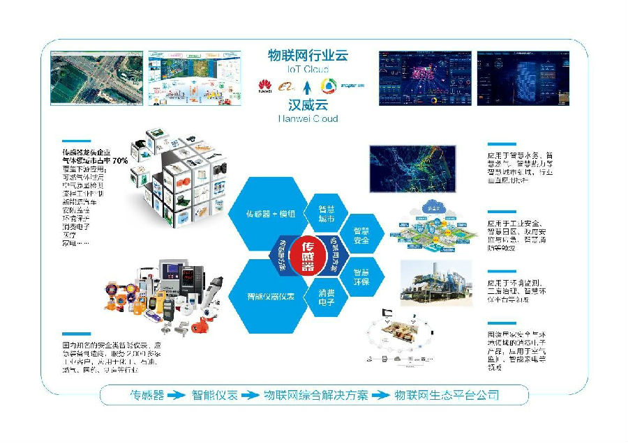 多年以來(lái),漢威科技的技術(shù)骨干們從將國(guó)外的先進(jìn)技術(shù)進(jìn)行拆解、學(xué)習(xí)的基礎(chǔ)上進(jìn)行創(chuàng)新、調(diào)整出發(fā),到從單一傳感器到全品類傳感器的獨(dú)立開(kāi)發(fā)與制造,再到將產(chǎn)業(yè)鏈延長(zhǎng)至下游,實(shí)現(xiàn)氣體檢測(cè)儀器儀表的產(chǎn)品全鏈路布局。漢威科技又把握住市場(chǎng)機(jī)遇與時(shí)代脈搏,入局發(fā)展物聯(lián)網(wǎng),目前已擁有城市生命線監(jiān)測(cè)預(yù)警平臺(tái)、智慧安全、智慧環(huán)保、智慧燃?xì)狻⒅腔鬯畡?wù)、智慧消防、居家智能與健康等一系列成熟的物聯(lián)網(wǎng)解決方案,廣泛應(yīng)用于工業(yè)安全、環(huán)境監(jiān)測(cè)、燃?xì)狻⒐┡潘、消防、交通、熱力、;繁O(jiān)管、綜合管廊、居家健康等各個(gè)領(lǐng)域。