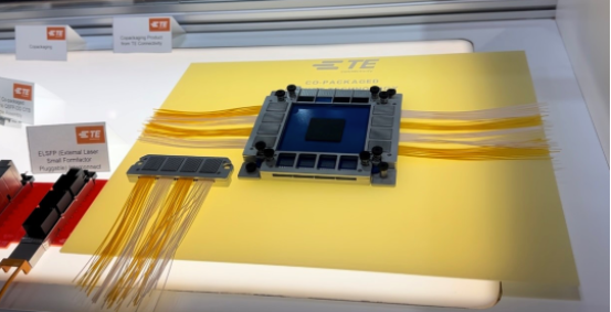 TE的OTB布線系統(tǒng)由TE的OIF兼容協(xié)同封裝銅模塊與TE的OIF兼容microLGA細(xì)間距插座技術(shù)相匹配組成。這種聯(lián)合封裝的銅模塊和插座解決方案將很快由OIF作為行業(yè)標(biāo)準(zhǔn)解決方案發(fā)布,提供多達(dá)32個(gè)通道,每個(gè)通道的速度為112 Gbps,每個(gè)模塊的總帶寬為3.2 Tbps,有助于實(shí)現(xiàn)網(wǎng)絡(luò)交換、人工智能/機(jī)器學(xué)習(xí)和計(jì)算中的各種下一代應(yīng)用。在此演示中,共封裝銅模塊通過電纜連接到四倍小尺寸可插雙密度 (QSFP-DD) OTB的4個(gè)端口,但也可以連接到背板連接器等其他應(yīng)用。