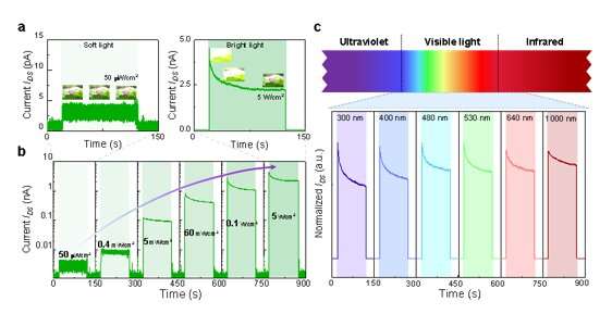 該設(shè)備可以在自供電模式下運(yùn)行,并表現(xiàn)出良好的人眼適應(yīng)行為,包括寬帶光敏圖像適應(yīng)(從紫外線到近紅外),近乎完全的光敏恢復(fù)(99.6%)和協(xié)同視覺(jué)適應(yīng),鼓勵(lì)智能光傳感器和機(jī)器視覺(jué)系統(tǒng)的進(jìn)步。