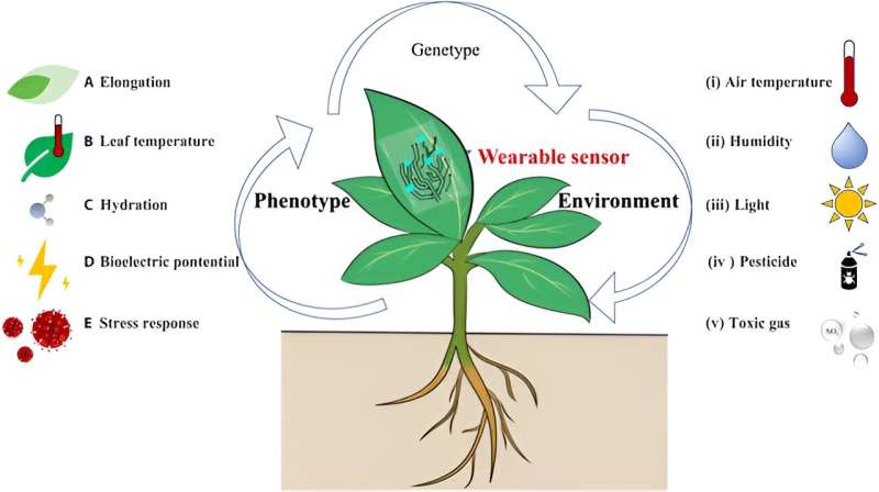 圖1穿戴式傳感器用于監(jiān)測植物表型和環(huán)境
