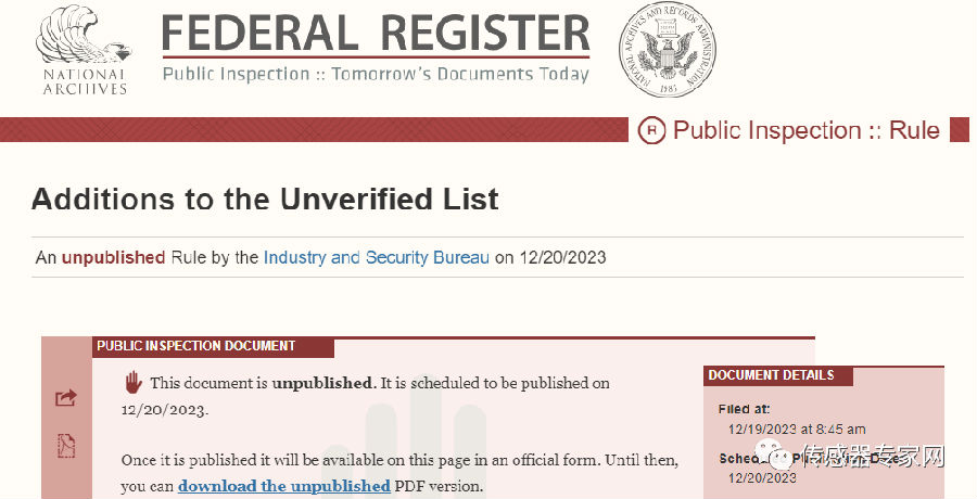 今日(12月20日),美國(guó)商務(wù)部又將13家中國(guó)實(shí)體列入“未經(jīng)核實(shí)清單”(UVL清單),本次被“拉黑”的實(shí)體大部分為電子類(lèi)企業(yè),值得一提的是包含了一家國(guó)產(chǎn)傳感器公司。