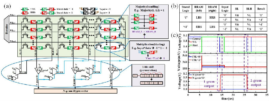 圖1:存內(nèi)高維計(jì)算編碼器和關(guān)聯(lián)記憶存儲(chǔ)器工作原理示意圖