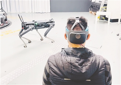 研究小組將8個(gè)這樣的傳感器整合到一個(gè)彈性頭帶中,并固定在枕骨區(qū)域。當(dāng)與顯示視覺提示的增強(qiáng)現(xiàn)實(shí)耳機(jī)相結(jié)合時(shí),電極可檢測到正在觀看的提示,然后與計(jì)算機(jī)合作,將信號解析為控制四條腿機(jī)器人運(yùn)動(dòng)的命令,該過程完全解放雙手。
