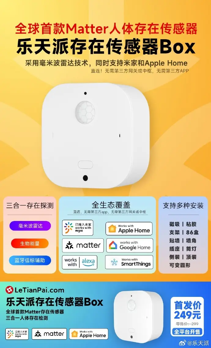 樂天派人體存在傳感器 Box 上市,首發(fā)價(jià) 249 元