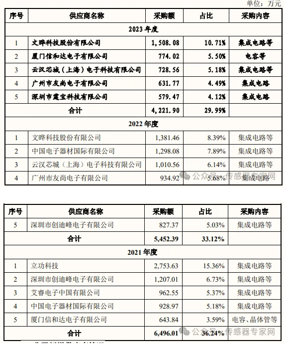 據(jù)招股書顯示,三大業(yè)務(wù)板塊中,嵌入式板卡及模塊產(chǎn)品線近三年占比均超過40%,是致遠(yuǎn)電子營收支柱,2023年度營收1.93億元;CAN-bus 總線通訊類產(chǎn)品線營收占比30%左右,為第二大產(chǎn)品線,2023年度營收1.54億元;測試測量分析儀器產(chǎn)品線占比20%左右,2023年度營收1.23億元。 主要財務(wù)指標(biāo)方面,2021-2023年報告期內(nèi),公司營業(yè)收入分別為 41,460.67 萬元、48,451.54 萬元和 47,731.37 萬元,實現(xiàn)凈利潤分別為 12,586.98 萬元、15,758.05 萬元和12,090.00 萬元。 總體上看,致遠(yuǎn)電子營收呈上升趨勢,其中2023年營收略有下滑,招股書稱受新能源汽車、光伏儲能等下游行業(yè)需求景氣等因素影響,且2022年度CAN-bus總線通訊類產(chǎn)品線、測試測量分析儀器產(chǎn)品線收入增長較快。 本次IPO中,致遠(yuǎn)電子擬向社會公眾公開 發(fā)行人民幣普通股不超過 2,000.00 萬股,擬募集資金為8億元,將投入到新一代工業(yè)智能物聯(lián)產(chǎn)品研發(fā)項目 、EsDA 平臺升級研發(fā)項目、制造中心升級項目以及補充流動資金。 值得一提的是,致遠(yuǎn)電子是國內(nèi)少數(shù)自建物聯(lián)網(wǎng)操作系統(tǒng)及開發(fā)生態(tài)的中國物聯(lián)網(wǎng)企業(yè),其物聯(lián)網(wǎng)生態(tài)稱為EsDA生態(tài)(Embeded system Design Automation,嵌入式系統(tǒng)設(shè)計自動化技術(shù)生態(tài)),包括AWorksLP 物聯(lián)網(wǎng)實時操作系 統(tǒng)、AWStudio 嵌入式應(yīng)用可視化開發(fā)平臺、AXPI 資源管理平臺、AWTK GUI 引擎及ZWS物聯(lián)網(wǎng)云平臺等自研技術(shù)平臺:致遠(yuǎn)電子EsDA生態(tài)涵蓋技術(shù)優(yōu)勢有: 目前,致遠(yuǎn)電子的產(chǎn)品已進(jìn)入比亞迪、寧德時代、陽光電源、天地科技、魚躍醫(yī)療等知名行業(yè)客戶供應(yīng)鏈體系 ,其中,近三年,比亞迪均是致遠(yuǎn)電子前五大客戶之一。 此外,致遠(yuǎn)電子前五大客戶還有北漢科技、微丹電子、京東數(shù)智工業(yè)、旭儀科技等。 采購方面,致遠(yuǎn)電子采購原料來自NXP、TI、ADI、ISSI、XILINX、納芯微、思瑞浦、瑞芯微、復(fù)旦微、興森科技等國內(nèi)外知名半導(dǎo)體廠商或其代理商。 致遠(yuǎn)電子主要采購產(chǎn)品為集成電路,前五大供應(yīng)商涵蓋多家知名電子元件分銷商,包括文曄科技、信和達(dá)電子、云漢芯城、中電器材(中電港)等。 實控人夫婦IPO前夕已協(xié)議離婚,三輪問詢,獨立性等多個問題被審議 據(jù)招股書股權(quán)結(jié)構(gòu)顯示,目前致遠(yuǎn)電子實控人為周立功、陳智紅,二人合計占據(jù),持有發(fā)行人 76.96%的股權(quán),為發(fā)行人控股 股東、實際控制人,致贏投資、立功科技、廣州求遠(yuǎn)系實際控制人的一致行動人。 其中,周立功、陳智紅直接持有發(fā)行人 35.81%、 31.84%的股權(quán),通過持有致贏投資、立功科技、廣州求遠(yuǎn)的股權(quán)而間接持有發(fā)行人 2.68%、6.63%的股權(quán)。 此前,周立功、陳智紅二人系夫婦關(guān)系,于 2022 年 3 月 2 日協(xié)議離婚,但通過簽署《一致行動協(xié)議》,保證了公司控制權(quán)結(jié)構(gòu)的穩(wěn)定性。 值得關(guān)注的是,致遠(yuǎn)電子曾是立功科技的全資子公司,立功科技于1999年成立,2020年7月立功科技沖擊上市,后撤回IPO申請。 此后,致遠(yuǎn)電子從立功科技脫離,尋求獨立上市:2022年5月,經(jīng)股東一致同意后公司正式變更為現(xiàn)今的“廣州致遠(yuǎn)電子股份有限公司”。