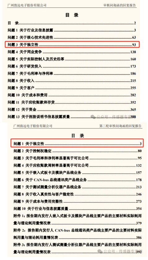 正因為致遠(yuǎn)電子的這段歷史,其獨立性問題成為致遠(yuǎn)電子本次IPO多輪問詢中都被問到的核心問題。 關(guān)于致遠(yuǎn)電子的獨立性問題,深交所問詢了關(guān)聯(lián)交易情況、無償受讓立功科技專利情況、任職人員交叉、公用OA系統(tǒng)等多個問題。 其中,無償受讓立功科技專利方面,回復(fù)函中介紹,2021 年 1 月,公司與立功科技簽署了轉(zhuǎn)讓協(xié)議,立功科技將 16 項專利、22 項軟件著作權(quán)及 6 項商標(biāo)無償轉(zhuǎn)讓給發(fā)行人,這些專利基于致遠(yuǎn)電子的部分技術(shù)積累而形成的通用技術(shù)成果,對致遠(yuǎn)電子的經(jīng)營起輔助銷售的作用,對于發(fā)行人及立功科技生產(chǎn)經(jīng)營的重要性程度均較低,因此,無償轉(zhuǎn)讓對價合理,具有商業(yè)合理性和必要性。 任職人員交叉方面,致遠(yuǎn)電子認(rèn)為,該部分人員從立功科技調(diào)整至致遠(yuǎn)電子后,雙方已不存在人員交叉任職的情形,且該部分人員主要從事致遠(yuǎn)電 子相關(guān)產(chǎn)品和技術(shù)的研發(fā)工作,其形成的研發(fā)成果歸屬于致遠(yuǎn)電子。 保持高研發(fā)投入的國產(chǎn)傳感&物聯(lián)網(wǎng)產(chǎn)業(yè)巨頭,時機未到下的主動撤回作為國產(chǎn)傳感及物聯(lián)網(wǎng)產(chǎn)業(yè)鏈的優(yōu)秀企業(yè),致遠(yuǎn)電子本次IPO,如同此前多家傳感器企業(yè)一樣,受到了經(jīng)濟大環(huán)境和金融政策等諸多因素的困擾。 在招股書的重大事項及風(fēng)險中,提及產(chǎn)品技術(shù)迭代與創(chuàng)新風(fēng)險、報告期前期關(guān)聯(lián)交易規(guī)模相對較大的風(fēng)險、原材料價格波動的風(fēng)險、國際貿(mào)易摩擦帶來的個別原材料供應(yīng)風(fēng)險、關(guān)于實際控制人控制權(quán)穩(wěn)定的風(fēng)險。 其中,前期關(guān)聯(lián)交易規(guī)模相對較大、實際控制人控制權(quán)穩(wěn)定等問題如前文所述。 此外,在中信證券的保薦書中,亦提及核心技術(shù)失密、核心人才流失、毛利率凈利率下滑等風(fēng)險問題。 致遠(yuǎn)電子注重研發(fā),其研發(fā)團隊由董事長、總經(jīng)理周立功直接負(fù)責(zé),報告期內(nèi),公司研發(fā)費用率分別為17.61%、17.76%和20.74%,平均18.7%,保持在了業(yè)內(nèi)較高水平。致遠(yuǎn)電子已經(jīng)構(gòu)建了底層平臺與具體產(chǎn)品技術(shù) 相結(jié)合的技術(shù)體系,并可以提供 ZWS 物聯(lián)網(wǎng)云平臺服務(wù),形成從底層到應(yīng)用的完整的工業(yè)智能物聯(lián)技術(shù)體系,其技術(shù)實力處于國內(nèi)先進(jìn)水平,部分產(chǎn)品實現(xiàn)對國外廠商的進(jìn)口替代,在業(yè)內(nèi)具有較強的競爭力。 來自深交所的第三輪審核問詢函在今年3月份發(fā)出,而隨著市場和環(huán)境的變化,致遠(yuǎn)電子選擇了主動撤回IPO申請。 從脫離立功科技獨立上市,到2023年6月IPO申請獲受理,經(jīng)歷三輪問詢,本次致遠(yuǎn)電子的IPO之旅畫下并不圓滿的句號,時機仍然未到。