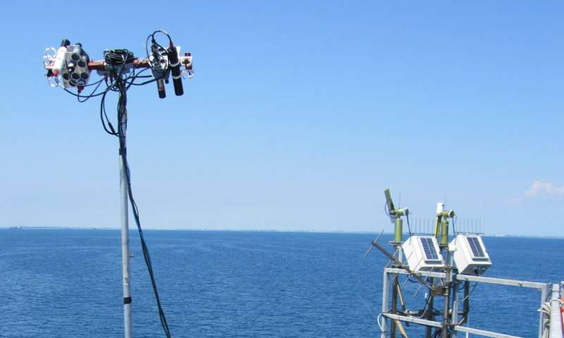 亞得里亞海平臺上對一些最常用的科學(xué)光學(xué)傳感器(輻射計)進行了為期 10 天的測試。圖片來源:普利茅斯海洋實驗室