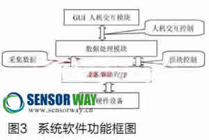 本系統(tǒng)由三大模塊組成,如圖3所示,從底層到上層分別是:數據采集驅動模塊,數據處理模塊,GUI人機交互模塊。