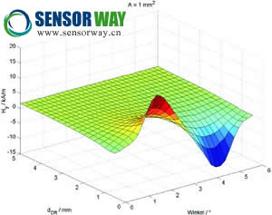 要開發(fā)傳感器系統(tǒng),首先必須對預(yù)期的磁輸入信號(hào)有一個(gè)總體了解。首先要了解編碼器輪和傳感器頭上永磁體的標(biāo)準(zhǔn)規(guī)格,以及預(yù)期尺寸和公差。通過 ANSYS 方法進(jìn)行 FEM 仿真可確定磁場。這里就有對編碼器輪、傳感器元件和磁體進(jìn)行建模的問題(圖 5)。然后便可根據(jù)傳感器元件和編碼器輪之間的距離,確定與之呈函數(shù)關(guān)系的磁場強(qiáng)度。圖 6 是傳感器橋上的磁輸入信號(hào)與距離呈函數(shù)關(guān)系的三維圖示。很容易看出輸入信號(hào)呈正弦曲線,信號(hào)振幅隨距離增加而明顯減小。除了距離之外,位置偏離也會(huì)導(dǎo)致振幅減小。例如,如果傳感器頭不在編碼器輪前面的中心位置,那么信號(hào)振幅也會(huì)減小。根據(jù) FEM仿真方法,這樣也可將機(jī)械規(guī)范轉(zhuǎn)化成預(yù)期磁變量。與氣隙變化不同,傾斜會(huì)導(dǎo)致偏移,這同樣會(huì)影響系統(tǒng)的正常運(yùn)轉(zhuǎn)。FEM 仿真也可以預(yù)估其造成的影響(圖 7),而且結(jié)果可直接轉(zhuǎn)化為可容許的位置公差。