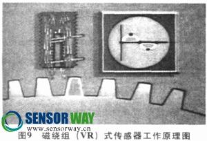 速度與位置傳感器是電控發(fā)動(dòng)機(jī)上用于檢測(cè)發(fā)動(dòng)機(jī)運(yùn)行速度和凸輪軸位置的傳感器。常用的有2種不同形式的速度傳感器: 磁繞組(VR) 式和霍爾效應(yīng)式, 如圖8所示。