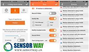 除了大廣角的攝像頭,Piper本身還包括溫度、濕度、光線及聲音傳感器,可以把它們放置在家中各處,實現(xiàn)全方位的監(jiān)測效果。另外,應(yīng)用程序還支持各種預(yù)設(shè)模式功能,讓你通過各種方式來監(jiān)控。