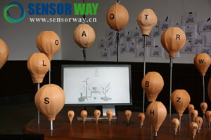 據(jù)報(bào)道,在這些形狀各異的沙袋上,印有不同的字母和數(shù)字以及傳感器,人們可以用手、腳踩出字母,踢出數(shù)字,或者用拳頭砸出一個(gè)句號(hào),然后通過(guò)傳感器使信息傳送到電腦。
