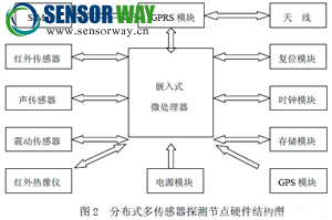 傳感器部分根據(jù)不同的應用環(huán)境分別動態(tài)地設(shè)置相應的傳感器,高可靠性地完成目標的 探測、發(fā)現(xiàn)、識別、定位及圖像拍攝等。隨著反偵察技術(shù)的發(fā)展,單一的傳感器探測很難有 效地探測到目標,必須使用多傳感器進行探測。在幾百米以下的超低空領(lǐng)域,通過紅外傳感 器、聲傳感器、震動傳感器等基本可以有效地探測和識別進入該區(qū)域的目標,通過紅外熱像 儀等攝取圖像,以便更準確地判斷目標,更好地進行信息融合。