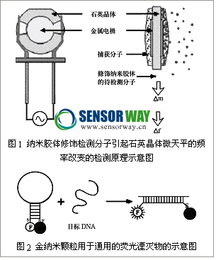 關(guān)于納米顆粒的研究很多,例如將功能性納米顆粒(如電子性質(zhì)的、光學(xué)性質(zhì)的和磁性的)固定在生物大分子(如多肽、蛋白、核酸)上,可制成用于生物信號(hào)檢測(cè)、信號(hào)轉(zhuǎn)換和放大的傳感器,其可分為聲波、光學(xué)、磁性和電化學(xué)等種類(lèi)。